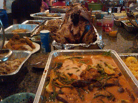 This past weekend, I made a quick and short trip to Las Vegas. No I didn't do any gambling except for a couple turns on the penny slots. But my main purpose for this trip was to attend a family friend's grandfather's 80th birthday. Drove up straight Saturday morning and arrived around 1pm. And considering that this was a Filipino party. Filipino food was plentiful. Though, one thing I have to mention. I gave up red meat for a few months. ACK!! You have no idea how disappointed I was I couldn't have some of the roasted lechon, kare kare, and a couple meat based dishes.